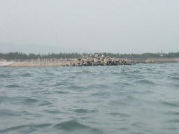 で、今日はというと、さすがに北風が吹いて、北上できそうにないので止まっている。昨日は、仙台湾をずっと北上してきたのだが、海岸はずっとテトラポットでおおわれていて単調だし、東からの弱い風で風波が立ち、ぱちゃぱちゃたたいて漕ぎにくいったりゃありゃしない。しかも、鳥の海まであと1.3キロと言うところで、とつじょ強風が吹き出し、波が崩れだした。1.3キロを1時間かけて漕いで、やっとの思いで防波堤をかわしたものの、今度は追い波になり、ブローチングをくらいながら、なんとか鳥の海にフネを入れた。