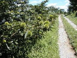 | 佐々木小屋に上っていく道。 この栗が道に出ていて、バイクで登っていくと 危険なのだ。 |