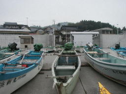 | 広田漁港。 この巨大な防波堤は、津波よけである。 湾をひとつはさんで宮城県なのだが、 宮城県側にはこういうのはない。 行政的には、津波は岩手県で止まるのだ。 |
