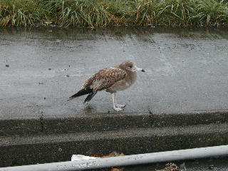 | ウミネコ(?)も寒くてふるえていた。 というより、飛ぶのがめんどくさそうで 近づいていってものそのそと歩いて 逃げるだけ。やる気がない。 |