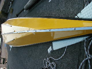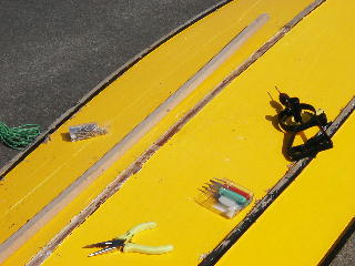 かわうそ号の修理は、完了した。すり切れた部分を切り取って、あらたに板を入れて、ついでにアルミ板をバウから5メートル(ほとんど後ろまで)はりつけてやった。本当はステンレス板じゃないとまずいけど、ステンレス板は手に入らなかったので、福井まで行ってドック入りした時に交換するつもりで、アルミ板を張ってしまった。とりあえずはこれでいいと思う。