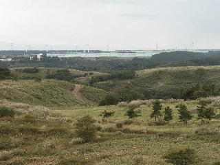 | 六ヶ所村風景。 元はただの丘陵地のようだ。 原子力施設と石油備蓄基地が広がる。 |