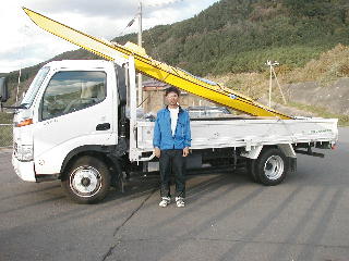 | トラックに積んで移動準備完了。 このあと、13時間連続運転が待っていた。 |