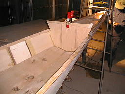 船体ができたところで、ビームとバルクヘッドを入れます。バルクヘッドはマニュアルにはクローズドセルのフォームを使うなんて書いてありますが、こんなもんはchesapekaeで直接買うよりほかにありません。大枚をはたいて、ためしに買ってみたのですが、どう見たってただのスポンジにしか見えませんでした。